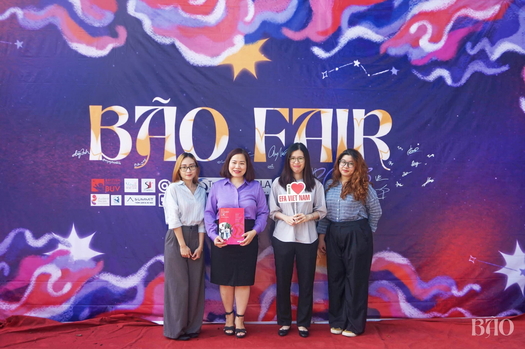 Sự kiện chính BÃO Fair quy tụ 36 ngành nghề với 12 gian hàng, thu hút hơn 700 lượt đăng ký và hơn 400 người tham gia. Bằng cách đem đến những lý thuyết sâu rộng của các chuyên gia kinh nghiệm trong nghề và phần thực hành với những hoạt động trực tiếp, chương trình giúp các bạn trẻ trải nghiệm thực tế các công việc của từng ngành nghề.